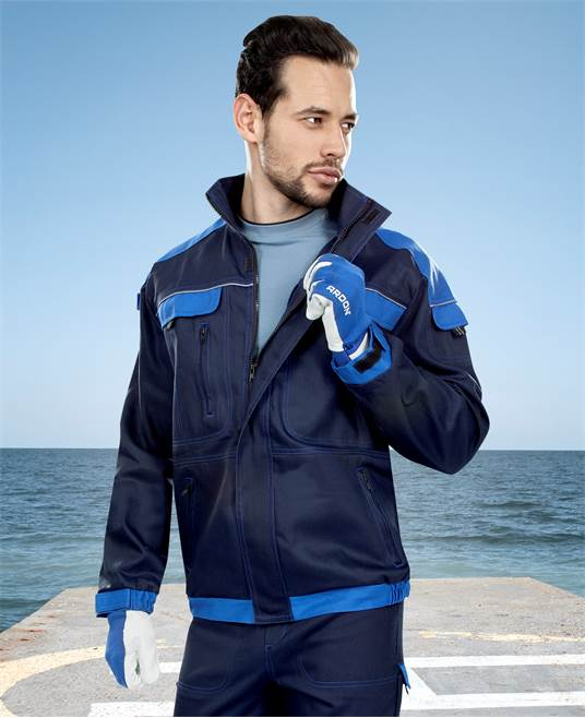 Costum bleumarin cu pantaloni cu pieptar de lucru, Ardon COOL TREND – oferă protecție, confort și stil pentru o varietate de medii de lucru. Include o jachetă de lucru ergonomică și pantaloni salopetă comozi, ambele confecționate din materiale de înaltă calitate.