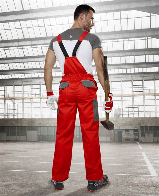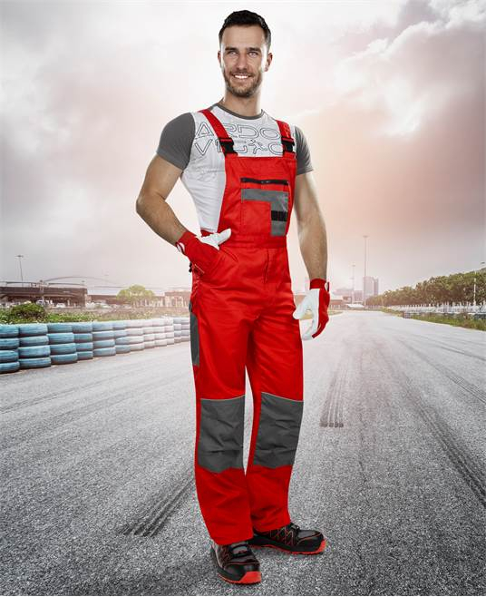 Caracteristici costum de lucru roșu cu pantaloni cu pieptar, Ardon 2STRONG: