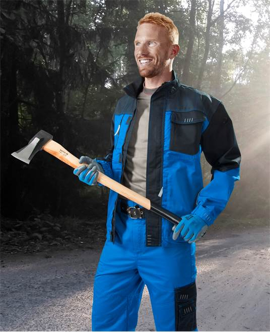 Set costum de lucru albastru-negru cu pantaloni cu pieptar, Ardon 4TECH – oferă protecție și funcționalitate sporite pentru o gamă largă de domenii profesionale. Include o jachetă de lucru modernă și pantaloni salopetă comozi, ambele confecționate din materiale durabile și confortabile.